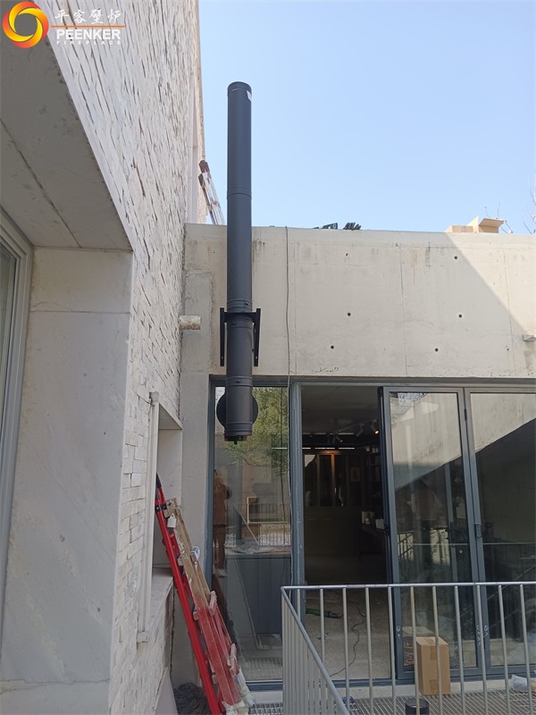 项目情况:该项目位于北京顺义区万树花园别墅区,壁炉安装在客厅位置,烟囱穿侧墙玻璃出户外加高。由平客项目部上门指导安装。