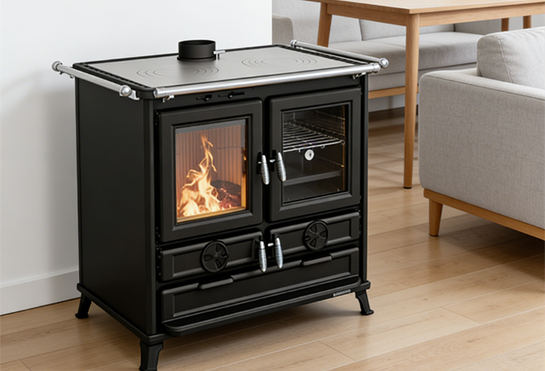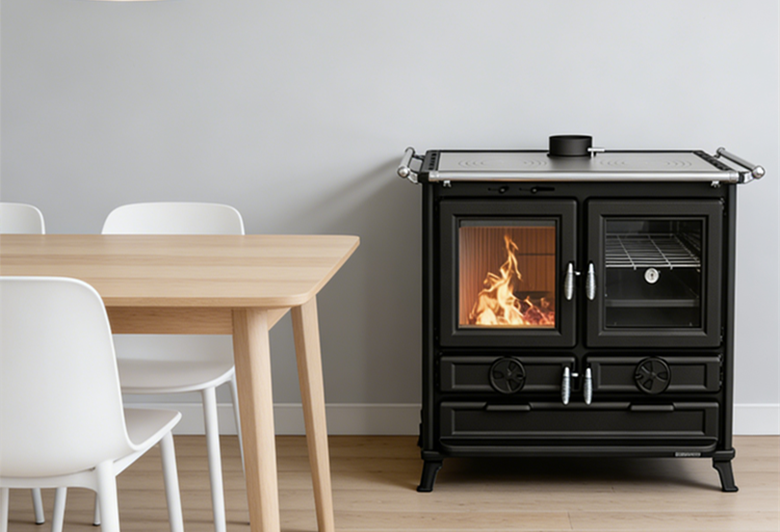 官网售价:¥60700,峰值功率13.9kw,燃烧效率86.7%,可供暖109m²,尺寸(高x宽x深)913x910x678mm,重量203Kg。壁炉以钢与铸铁精工打造,宽大换热面与加长强制烟道搭配不锈钢热交换器,复古手柄、摇动格栅、搪瓷铸铁炉门配750℃耐高温陶瓷玻璃,兼具颜值与实用。顶部铸铁烹饪板、带温感烤箱门,搭配43 升全景搪瓷烤箱,储物盘等一应俱全。